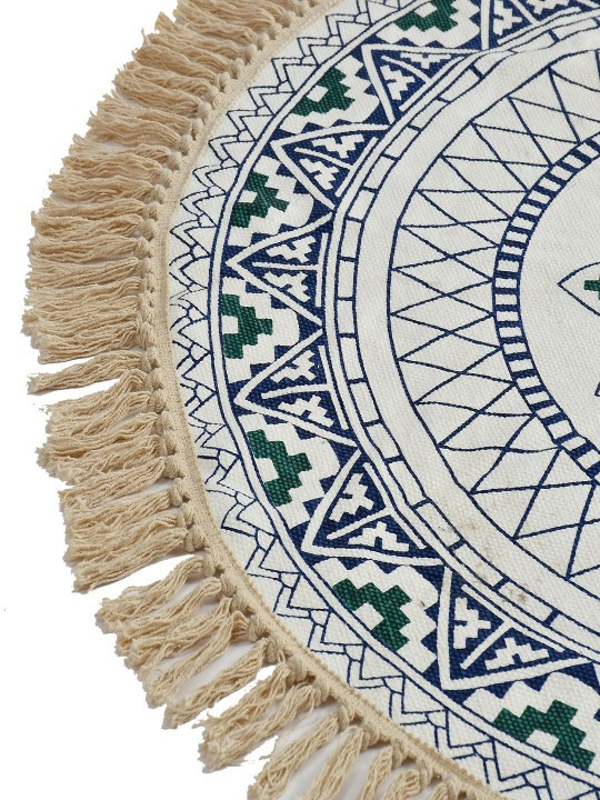 Blue Cotton Round Floral Printed Carpet - 3 FT